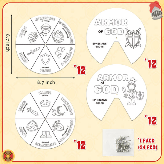COcnny 24 Sets Armor Of God Color Wheel Craft, Color Your Own Knight Art for Kids, Religious Bible Coloring DIY Crafts Art Cards Game for Sunday School Christian Classroom Home Activities VBS Supplies