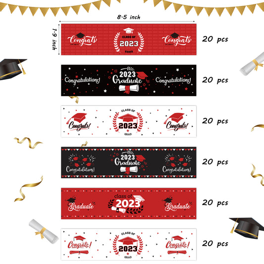 COcnny 120pcs Graduation Water Bottle Labels, Graduation Decorations Stickers Class of 2024 Congrats Grad Party Supplies, Bottle Wrappers Label Decor for High School College Graduate Celebration (Red)