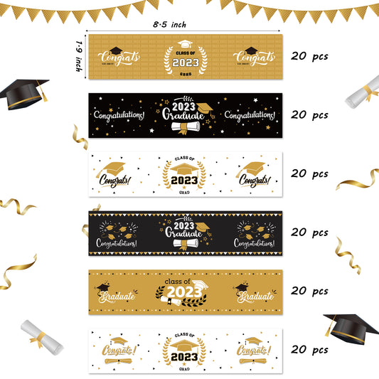 COcnny 120pcs Graduation Water Bottle Labels, Graduation Decorations Sticker Class of 2024 Congrats Grad Party Supplies, Bottle Wrappers Label Decor for High School College Graduate Celebration (Gold)