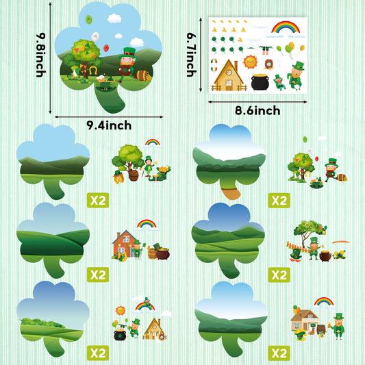 COcnny 24pcs Make a St. Patrick's Day Scene Sticker Craft, Make Your Own Scene Stickers for Saint Patrick’s Day, Shamrock Irish Lucky Clover DIY Art Labels, Classroom Kids Game Party Goodies Favor